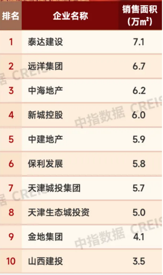 近日,中指照顾院发布《2025年1-3月天津房地产企业销售事迹TOP10》,泰罢了立、中海地产、远洋集团等一批具有国资配景的房企,事迹推崇卓绝同业。榜单知道,泰罢了立、远洋集团、中海地产位列销售面积榜前三。其中,远洋集团旗下的博屿海、畴前城隔离位列天津单盘成交面积第2、第8。